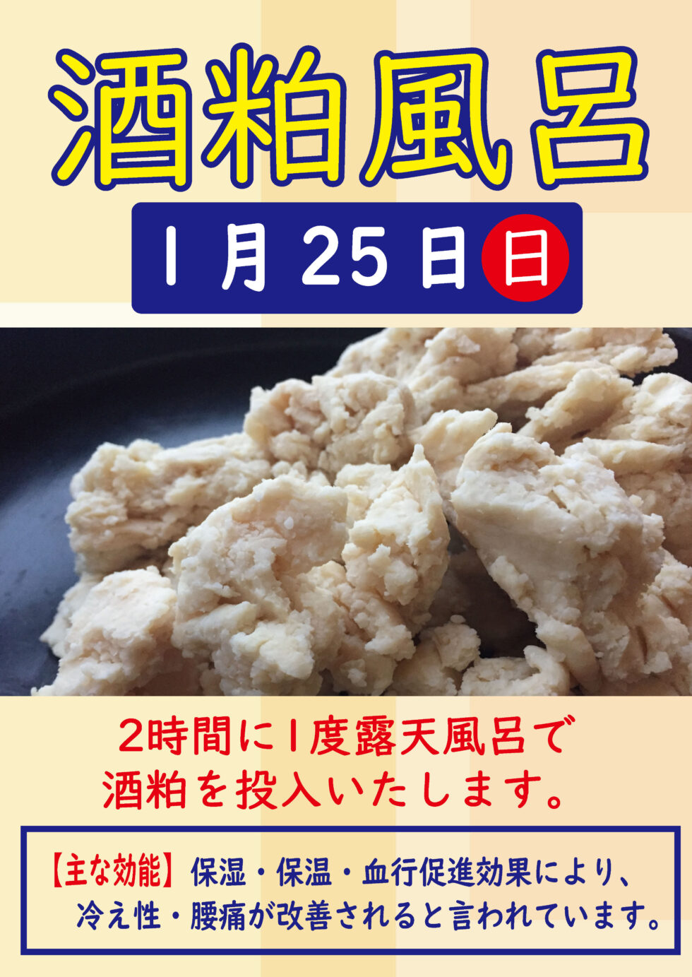 1月25日(日)に酒粕風呂を開催します!